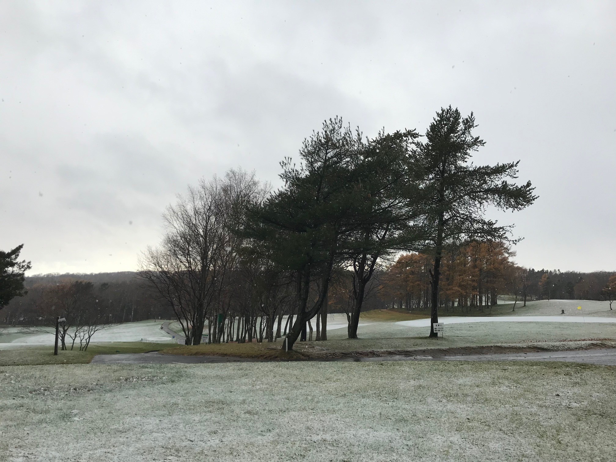 しかし、再び、13時過ぎから雪が降り始め、アッと言う間に添付の様にグリーンが真っ白になったため、安全の為にも途中クローズとさせて頂きました。