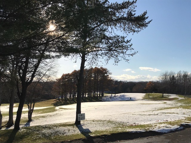 日差しもある一日でしたが、融雪が進まず陽当たり良いクラブハウス前でも添付の様な現状にて、明日(2025年11月13日、木曜日)も残雪クローズを決定致しました。