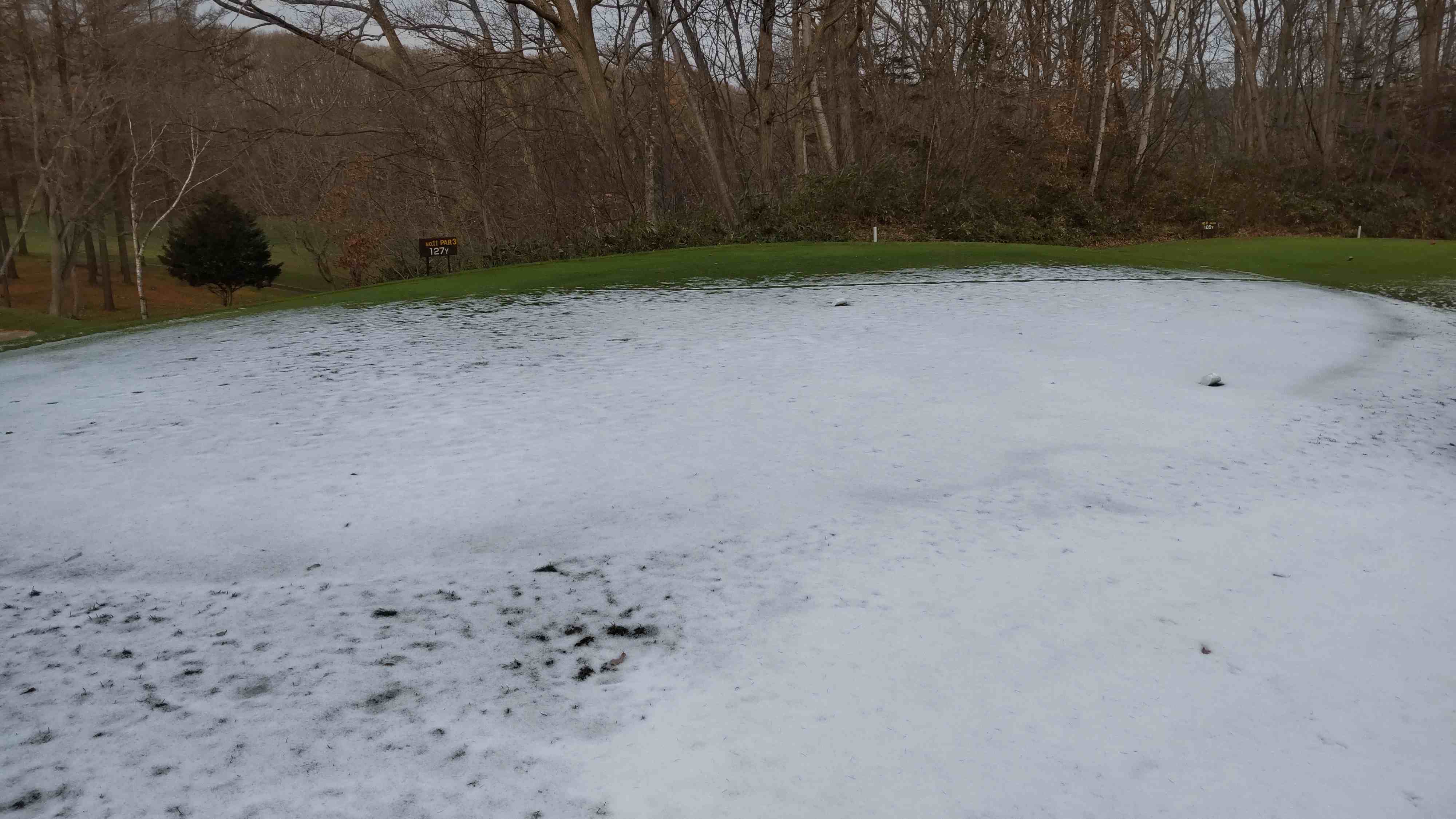(写真は一番残雪の多い南11番ティーイングエリアとなります)
