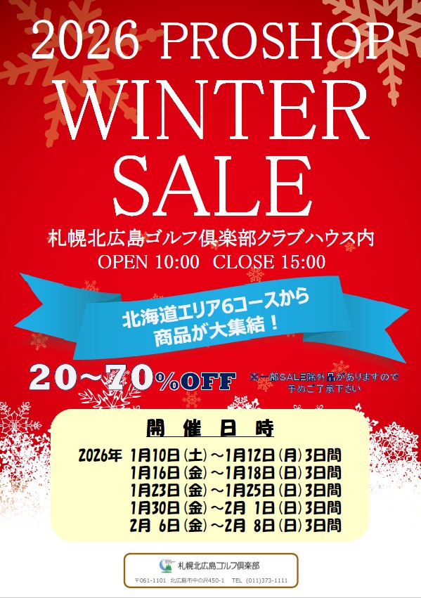 今冬<プロショップ/ウィンターセール>は、2026年1月10日(土)開幕