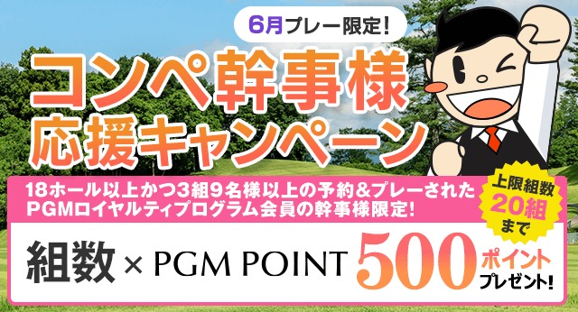 【6月プレー】幹事様応援 組数×PGMポイント500ポイントプレゼント