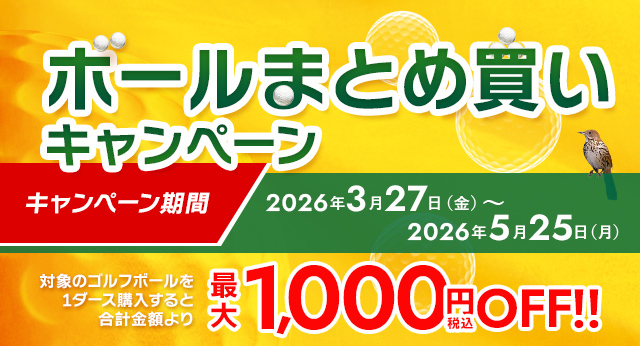 対象のゴルフボールを1ダース以上お買い上げのお客様に、条件に応じて合計金額より割引するキャンペーンを開催いたします!