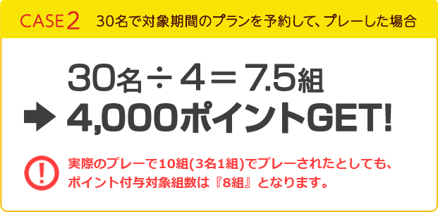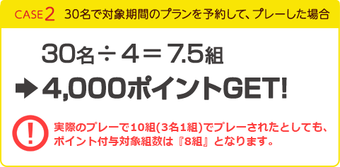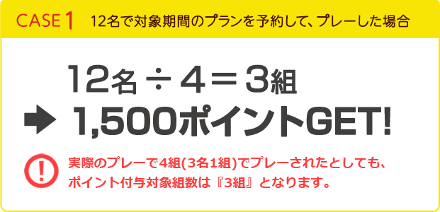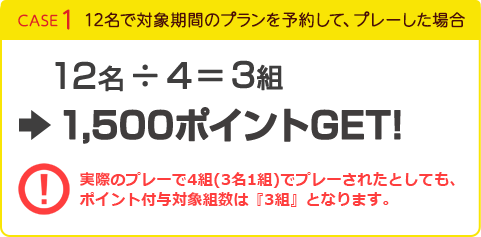 12名÷4=3組 3組×500ポイント=1,500ポイントの付与となります。