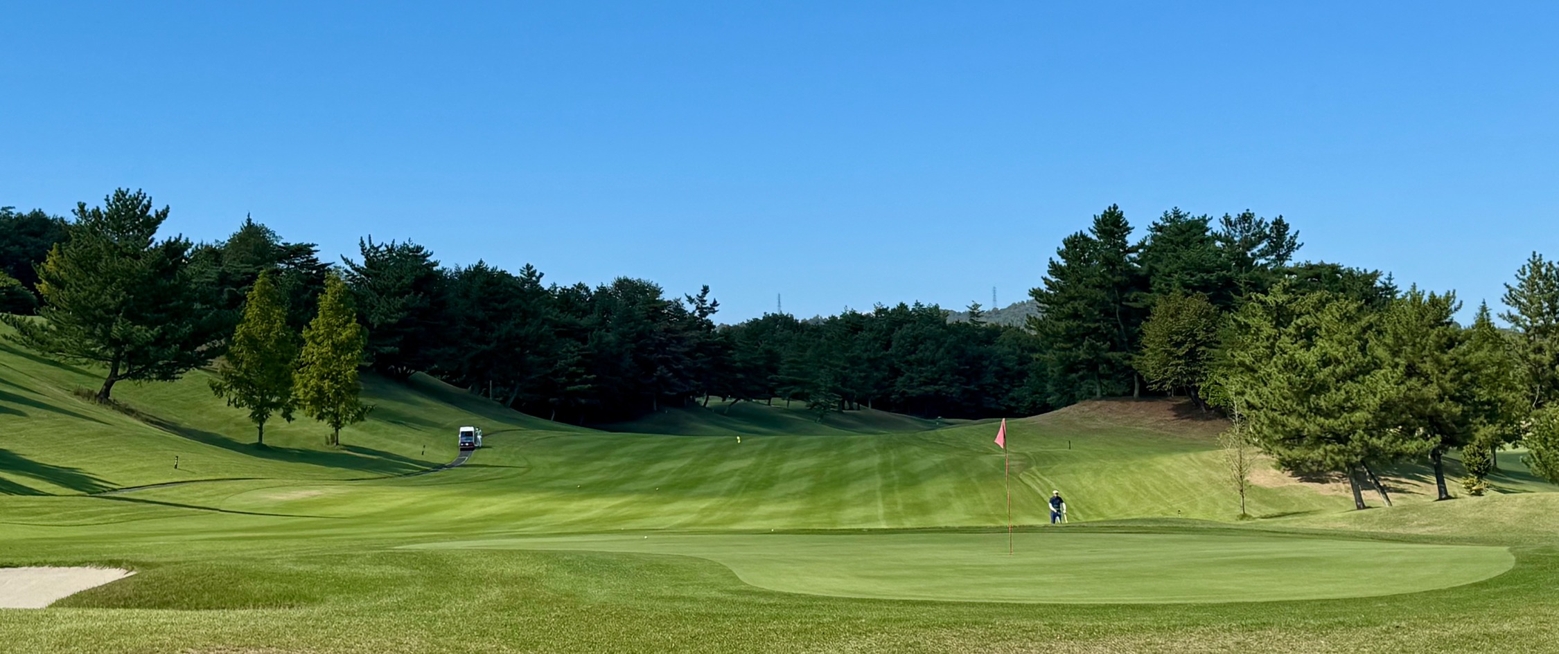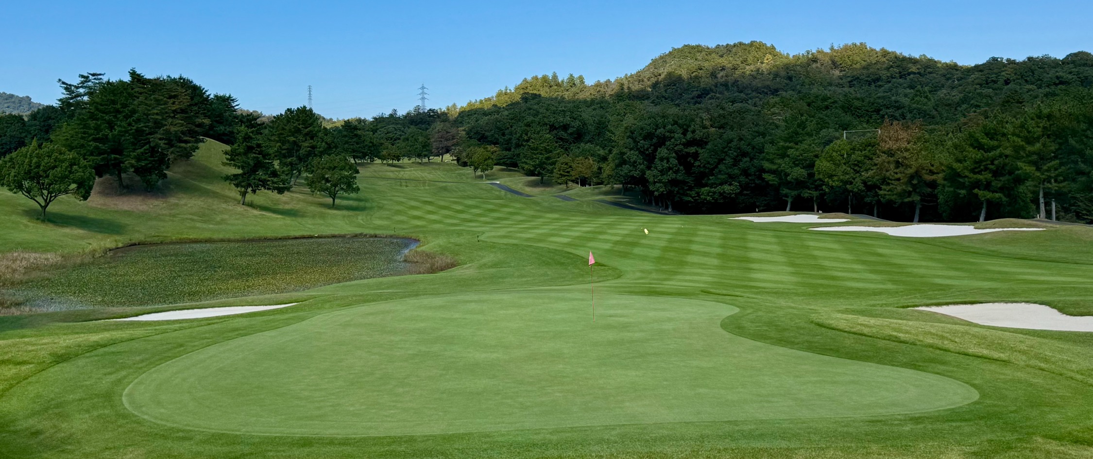 遠く鈴鹿山系を望み、湖東平野の南に広がるゆとりの18ホール。恵まれた地形を巧みに生かし、67のバンカーと自然の滝や池を残した変化に富んだコースレイアウトが特徴的です。