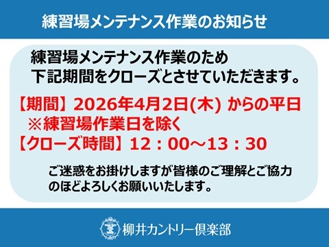 平日の12:00~13:30までの時間をメンテナンスの為クローズとさせていただきます。