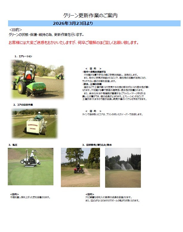 2026年3月23日よりグリーンの更新作業を行います。