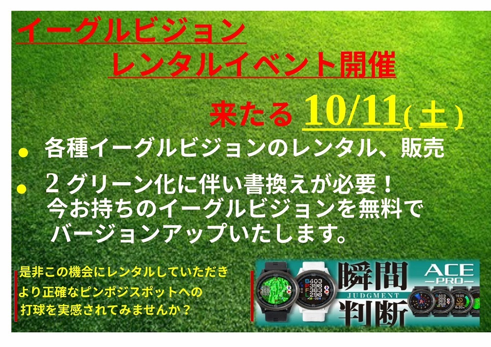 ●距離計ご購入を検討の方、試しに使用してみたい方等など是非この機会にイーグルビジョンをレンタルして、より正確なピンポジスポットへの挑戦を実感されてみませんか?
