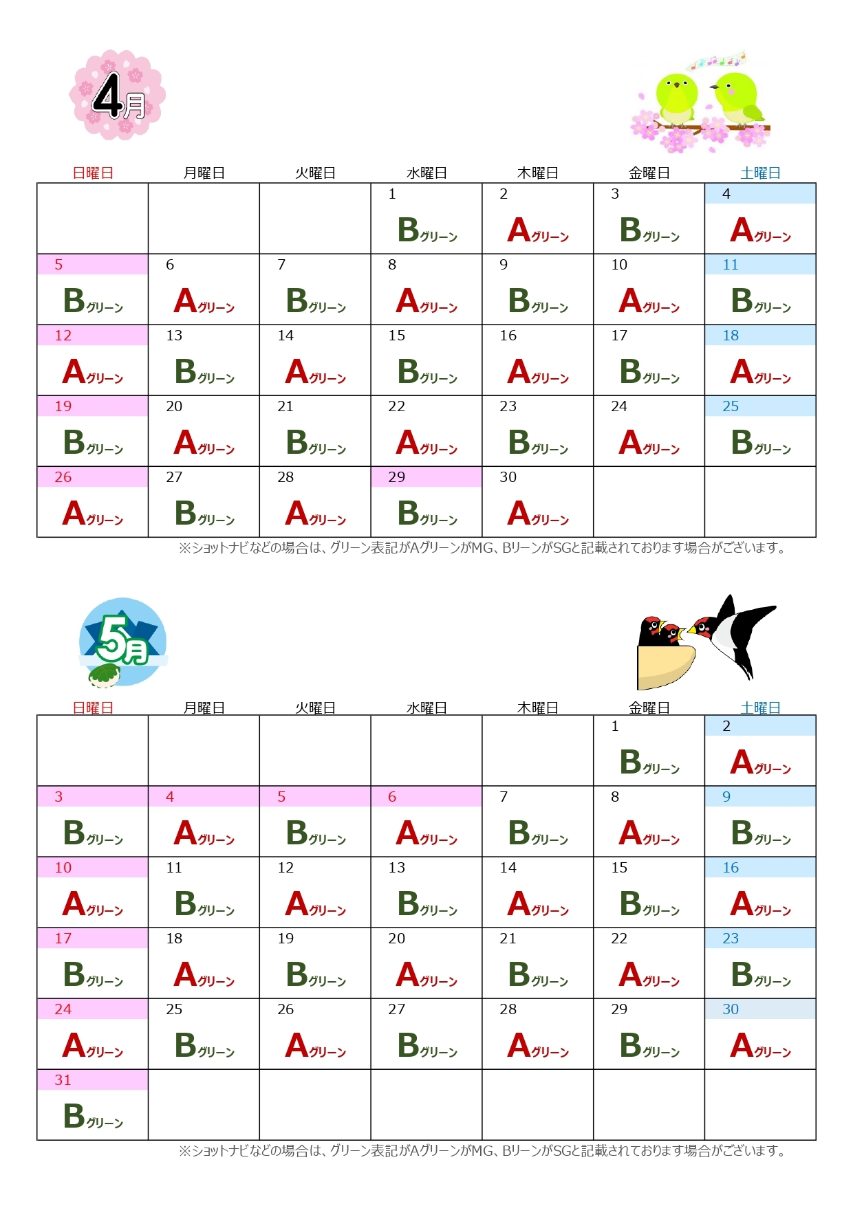 4月&5月の竹コースグリーンスケジュールを更新いたしました。