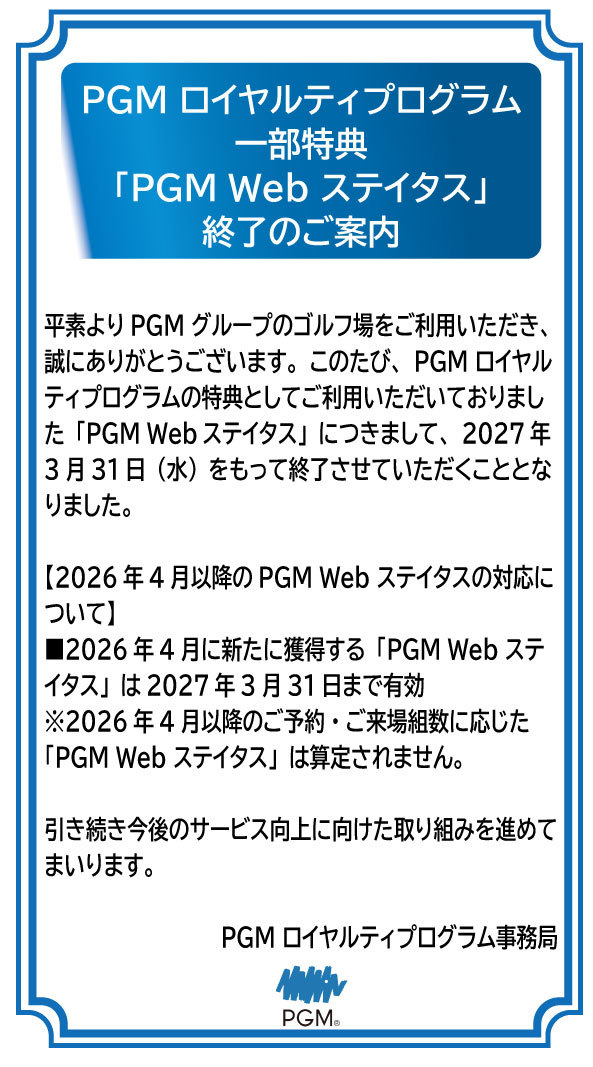 ※2026年4月以降のご予約・ご来場組数に応じた「PGM Web ステイタス」は算定されません。