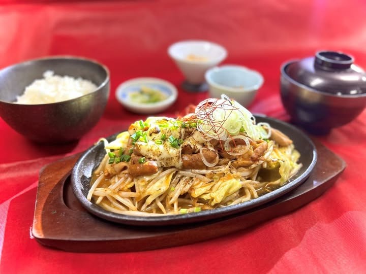 ジューシーなもつとシャキシャキ野菜を熱々の鉄板で!